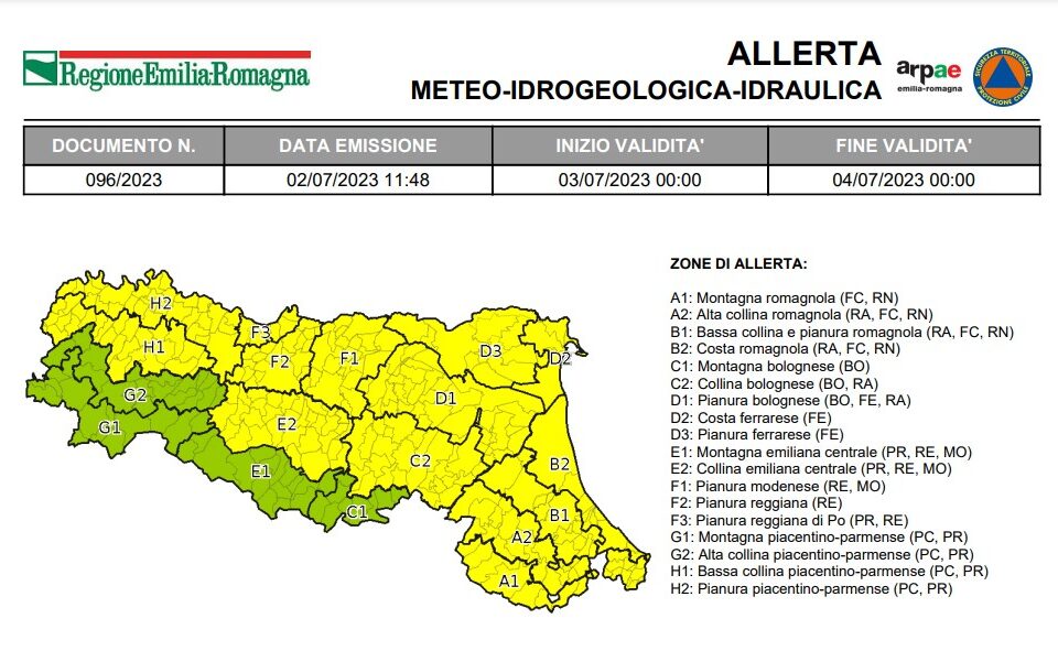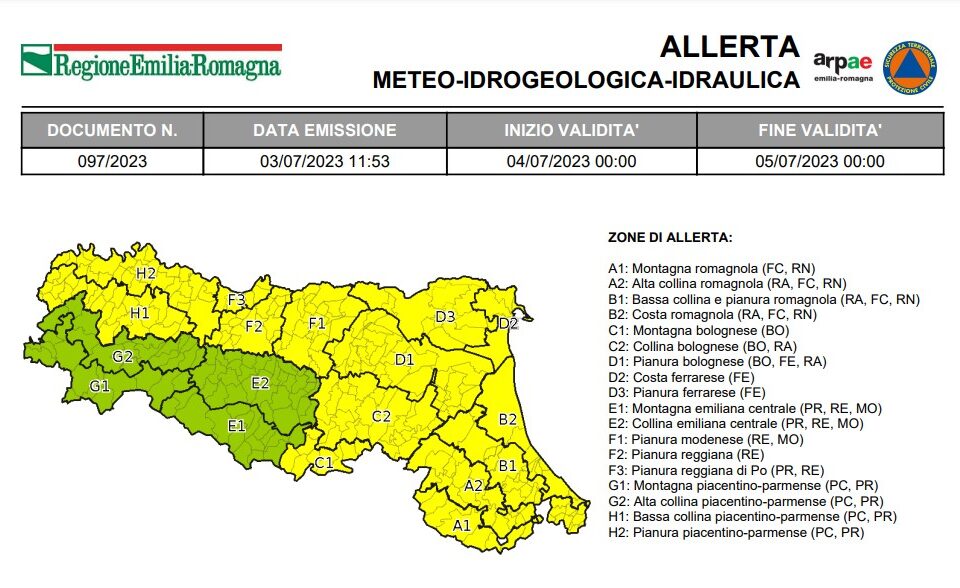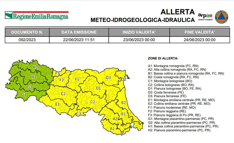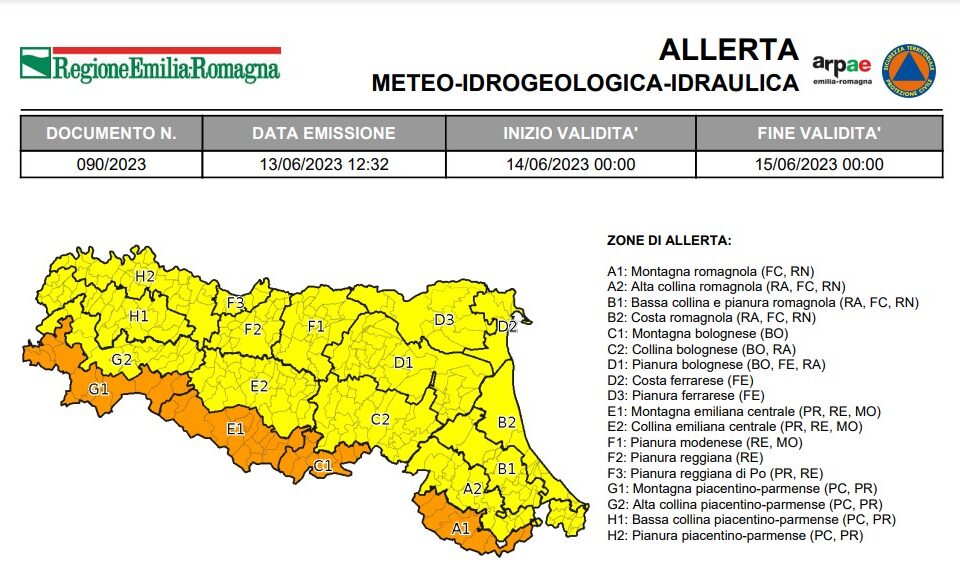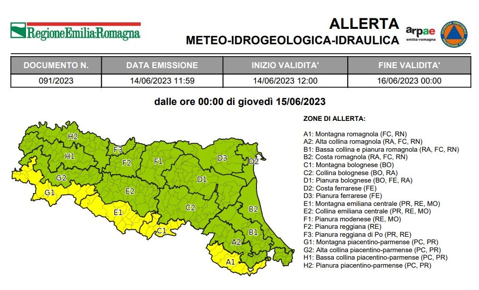 Per giovedì 15 giugno è stata emessa l’allerta meteo n.091/2023 valida sul territorio regionale dell’Emilia-Romagna per criticità idrogeologica. Per la...