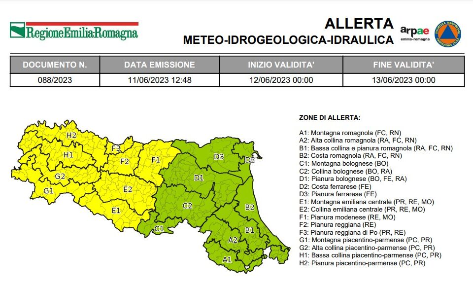 Per martedì 13 giugno è stata emessa l’allerta meteo n.089/2023 valida sul territorio regionale dell’Emilia-Romagna per temporali, criticità idraulica ed...