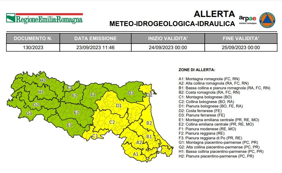 Per domenica 24 settembre è stata emessa l’allerta meteo n.130/2023 valida sul territorio regionale dell’Emilia-Romagna per temporali. Nelle prime ore...