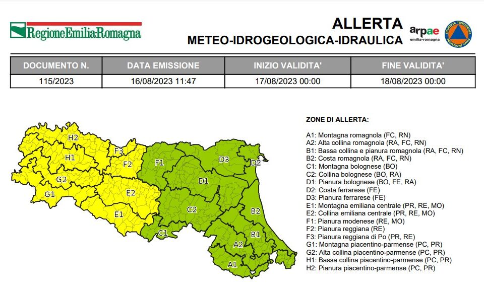 Per giovedì 17 agosto è stata emessa l’allerta meteo n.115/2023 valida sul territorio regionale dell’Emilia-Romagna per temporali. Nella giornata di...