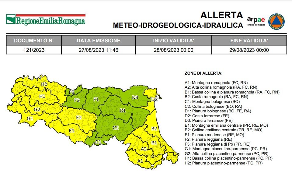 Per lunedì 28 agosto è stata emessa l’allerta meteo n.121/2023 valida sul territorio regionale dell’Emilia-Romagna per temporali, criticità idraulica ed...